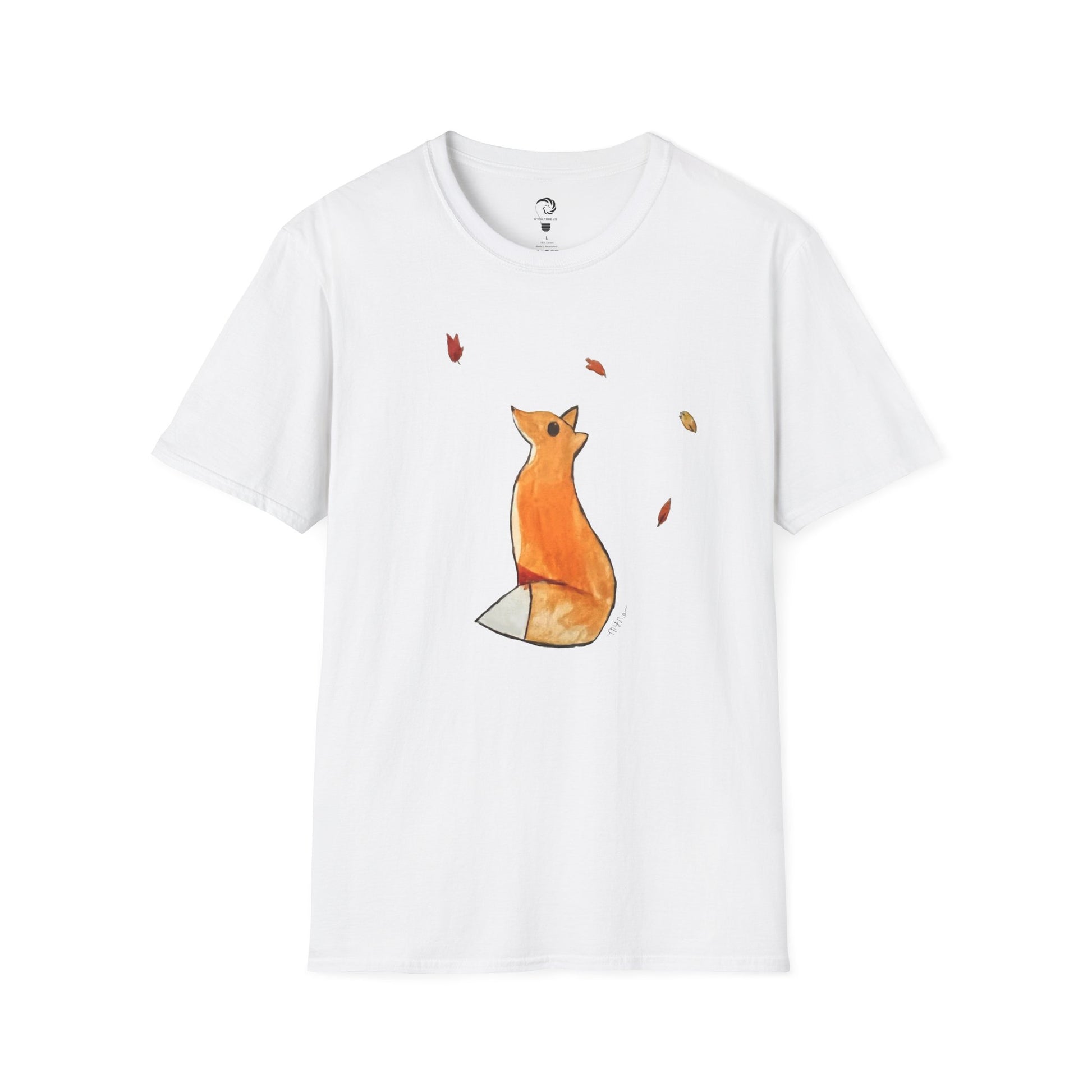 A soft, comfortable unisex T-Shirt featuring original artwork of a fox with leaves. This T-shirt is perfect for anyone looking to add a touch of nature-inspired design to their wardrobe. Ideal for nature lovers, animal enthusiasts, and those who appreciate unique artwork. Perfect for casual wear or as a statement piece during outdoor gatherings, nature walks, or casual outings.