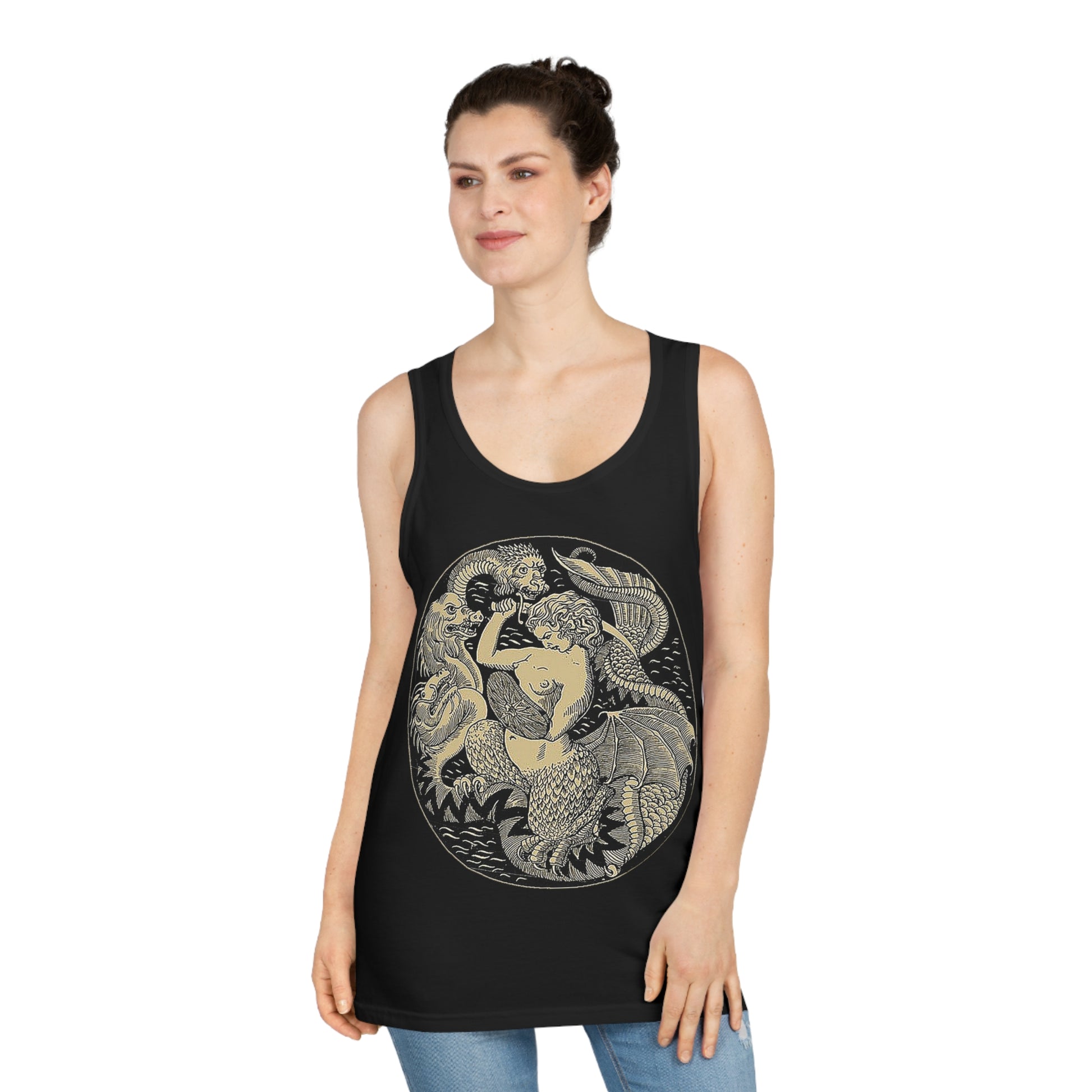 Warsaw Mermaid Black Graphic Tank Top Tee Siren slaying Hydra