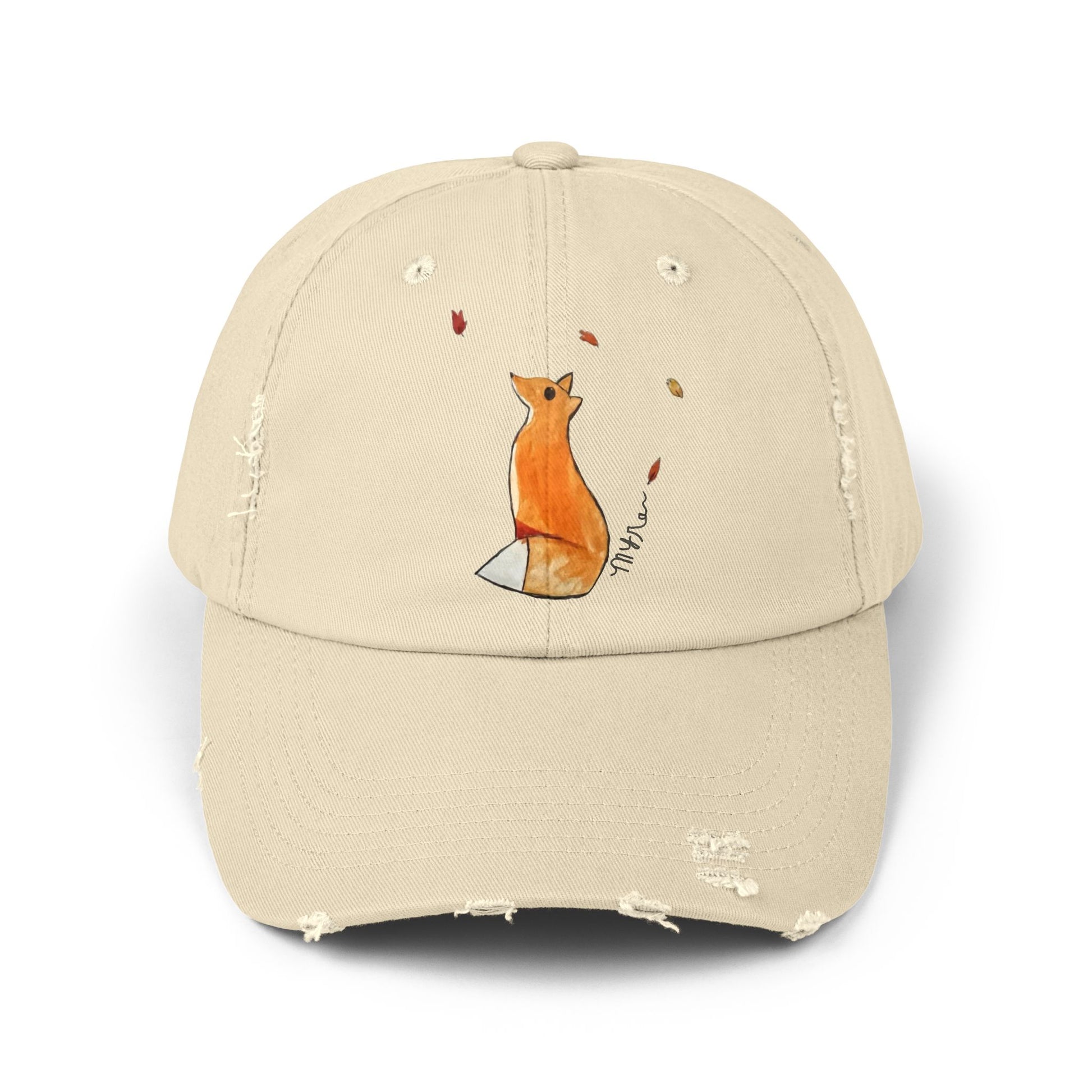 Whimsical Fox & Leaves - Distressed Cap - Casual Unisex Hat for Nature Lovers